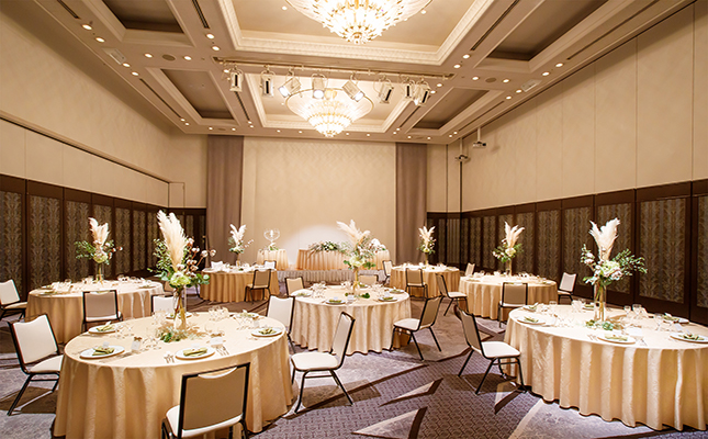 窓がある開放的な会場です。パーティー以外にも、あらたまったご会合に最適です。