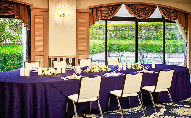 窓がある開放的な会場です。パーティー以外にも、あらたまったご会合に最適です。